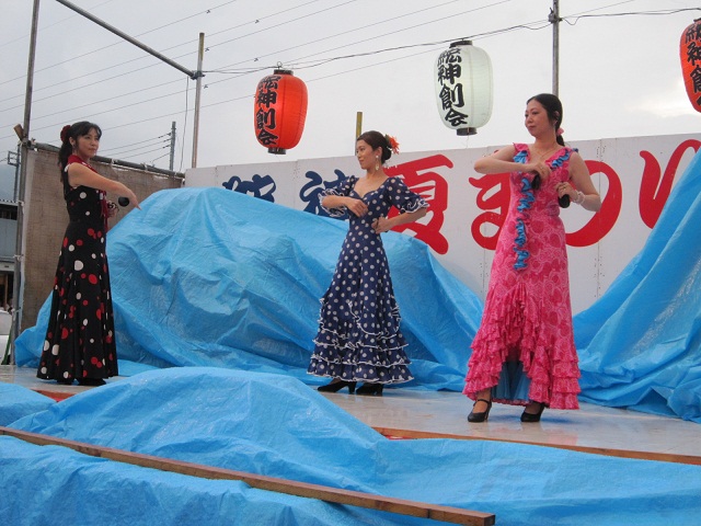 納涼祭の余興によんでいただきました。 フラメンコメンバー tomomi, mizue, sachi