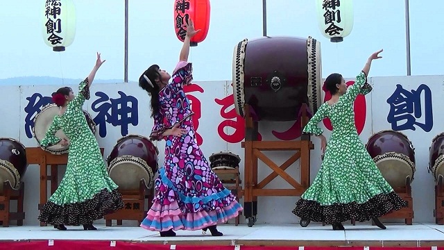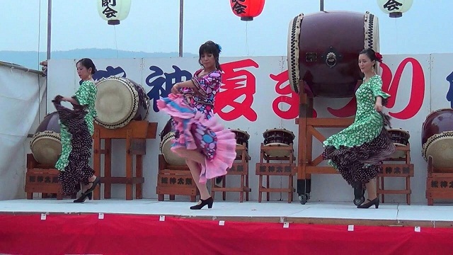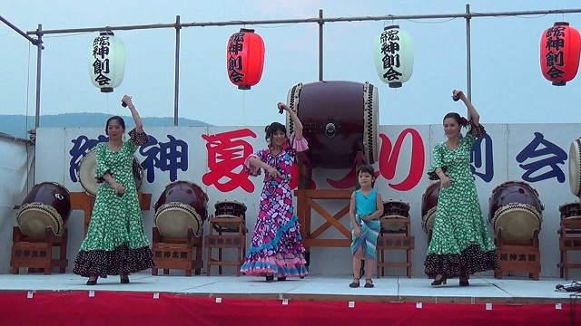 納涼祭の余興によんでいただきました。 フラメンコメンバー mizue,yuki, sachi