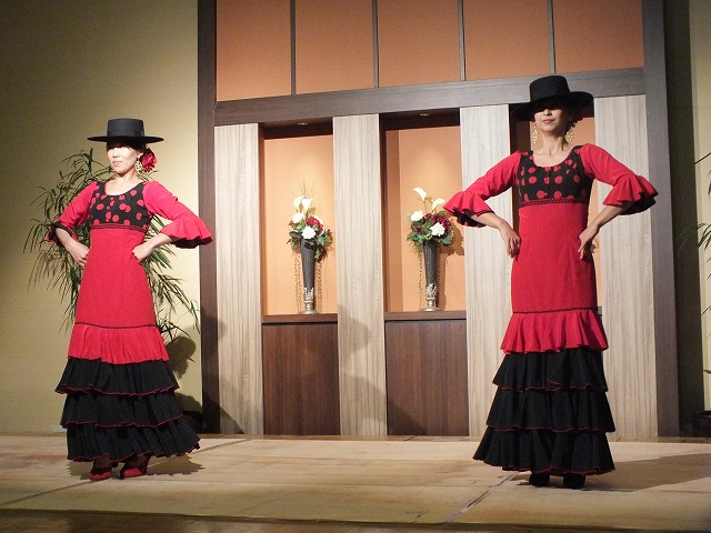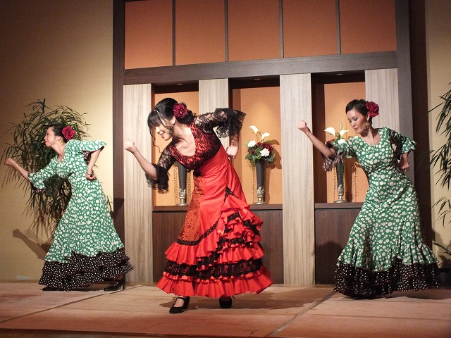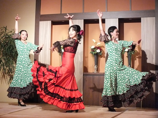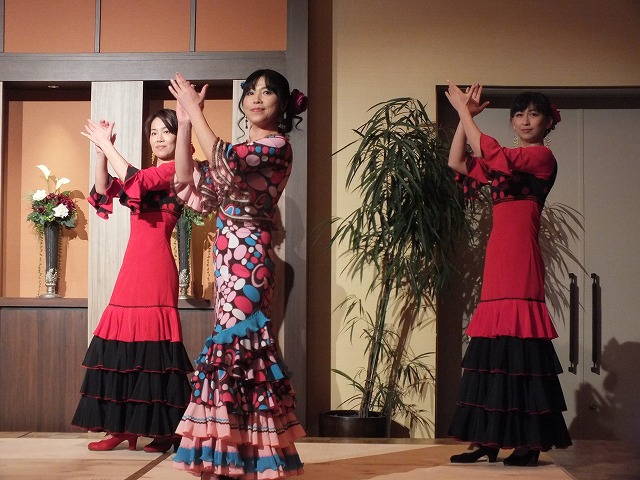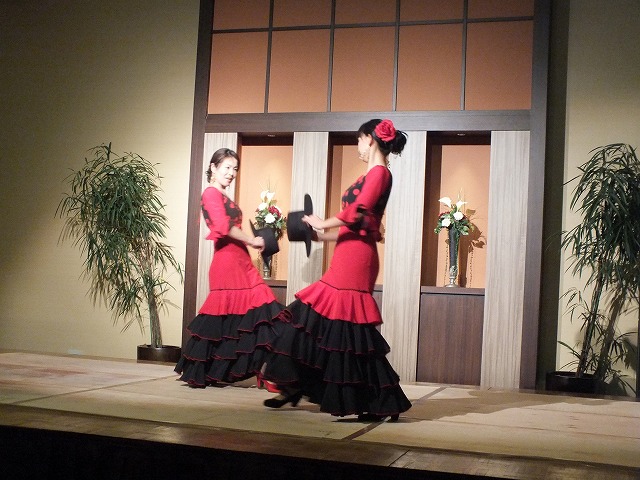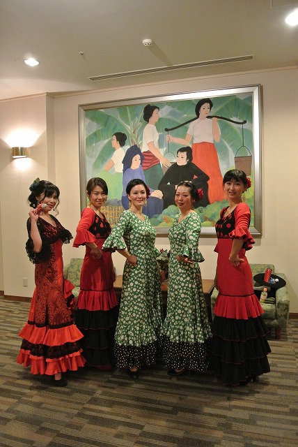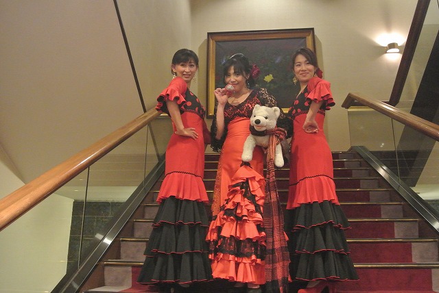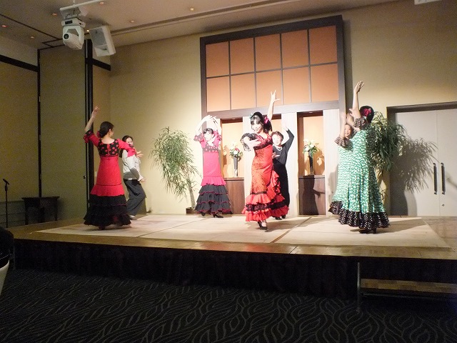 新年会の余興によんでいただきました。 フラメンコメンバー mizue,yuki,tomomi,mie, sachi