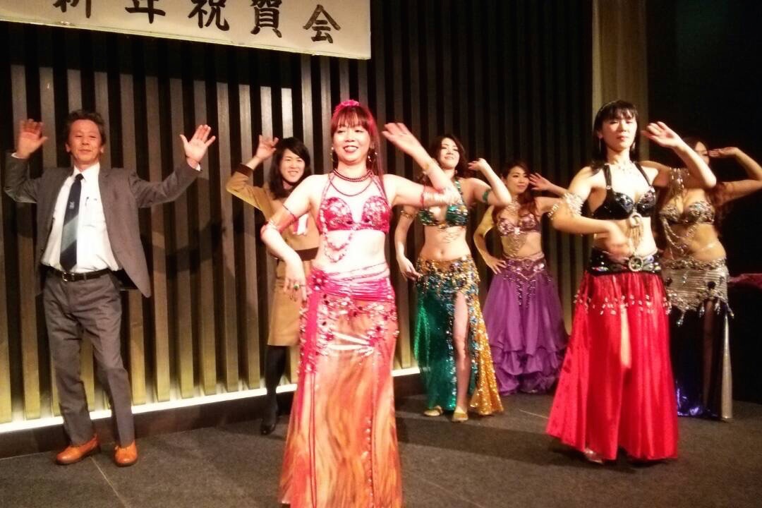 新年会の余興によんでいただきました。 ベリーダンスメンバー kayo,mizue,akiko,shie,emi,chikazu,erika,nagisa,sachi